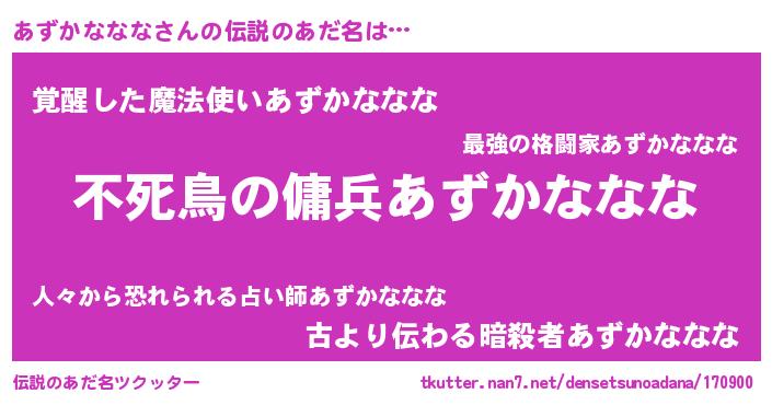 | 意味不明あだ名 | 『自称あずかななな』 |