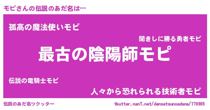 | ヒーロー風カッコイイあだ名 | 『ウルトラモピマン』『暗黒騎士モピ』 |