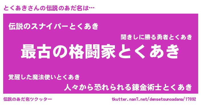 | ヒーロー風カッコイイあだ名 | 『ウルトラとくあきマン』『仮面トクダー』 |