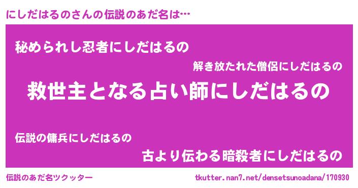 | ヒーロー風カッコイイあだ名 | 『天空の使者にしだはるの』 |