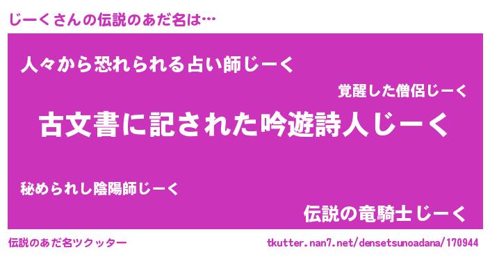 | ヘコむあだ名 | 『じーく(笑)』『じーもー』『じーお』 |