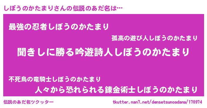| 意味不明あだ名 | 『住所不定無職しぼうのかたまり(8歳)』 |