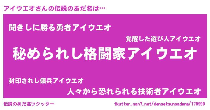 | 意味不明あだ名 | 『住所不定無職アイウエオ(12歳)』 |