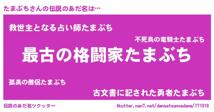 | ファンタジー風あだ名 | 『ゼタマトゥ』『エターナルタマブチー』 |