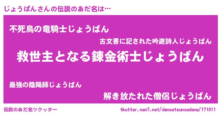 | ヒーロー風カッコイイあだ名 | 『天空の使者じょうばん』『黄金騎士ジョ』 |