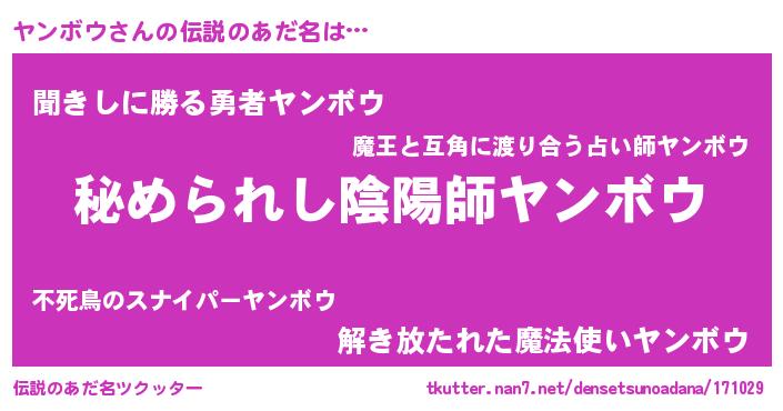| 意味不明あだ名 | 『自称ヤンボウ』『ヤンボウフォーエバー』 |