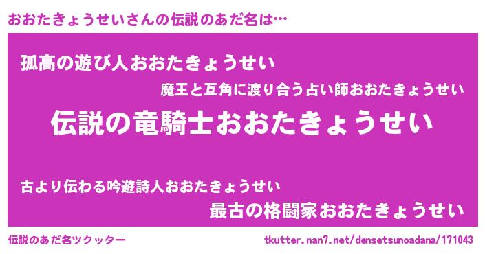 | ヒーロー風カッコイイあだ名 | 『スーパーオオタキョウセイ』 |