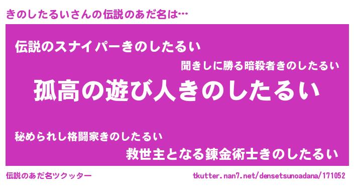 | 胡散臭い通販商品みたいなあだ名 | 『信頼と実績のペンダント…その名も「きのしたるい」』 |