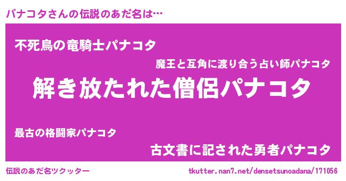 | 意味不明あだ名 | 『とにかく怪しいパナコタ』 |