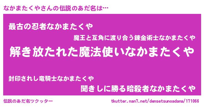 | 意味不明あだ名 | 『住所不定無職なかまたくや(8歳)』 |