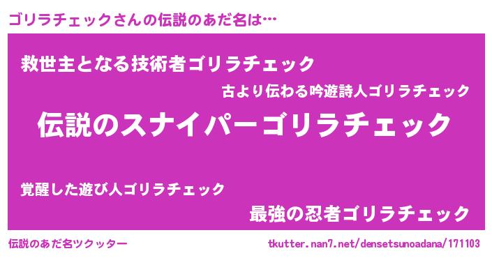 | 男性向けラノベタイトル風あだ名 | 『ゴリラチェックの憂鬱』 |