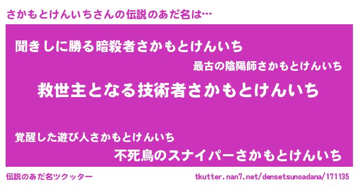 | 男性向けラノベタイトル風あだ名 | 『さかもとけんいちに滅ぼされるだけの簡単なお仕事です』 |
