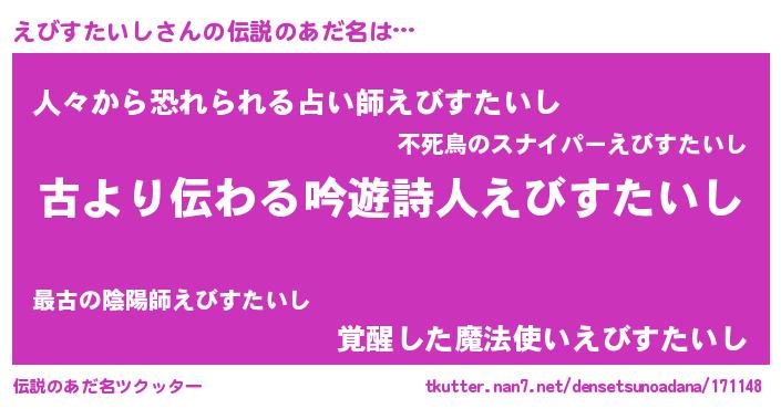 | 意味不明あだ名 | 『永久保存えびすたいし』 |