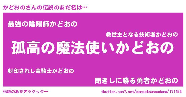 | ヒーロー風カッコイイあだ名 | 『黄金騎士カド』『ウルトラかどおのマン』 |