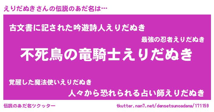 | ヒーロー風カッコイイあだ名 | 『ウルトラ戦士エリダヌキ』 |