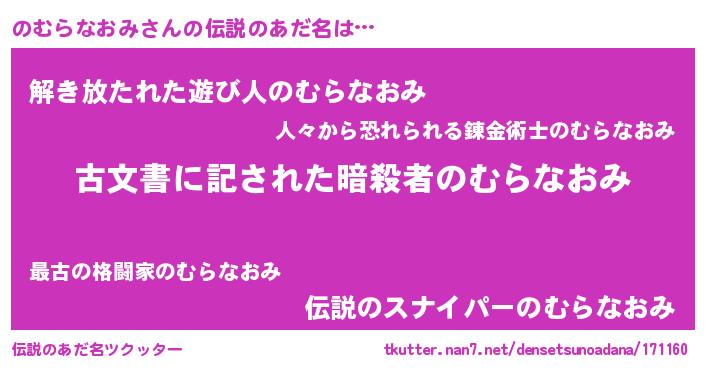 | ヒーロー風カッコイイあだ名 | 『ネオノムラナオミ』『天弓騎士ノム』 |