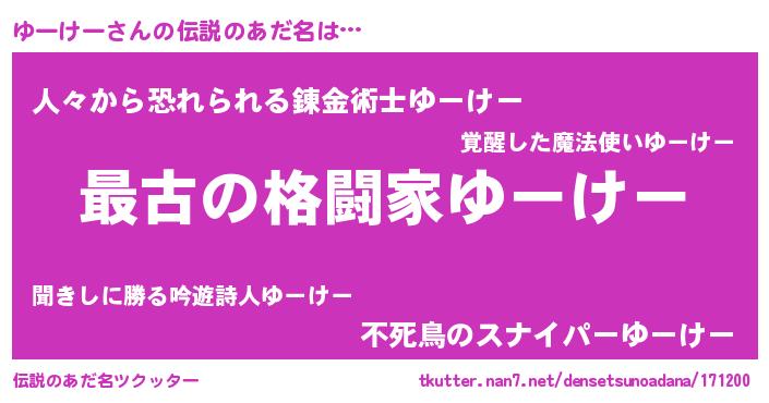 | 意味不明あだ名 | 『ゆーけーフォーエバー』『自称ゆーけー』 |