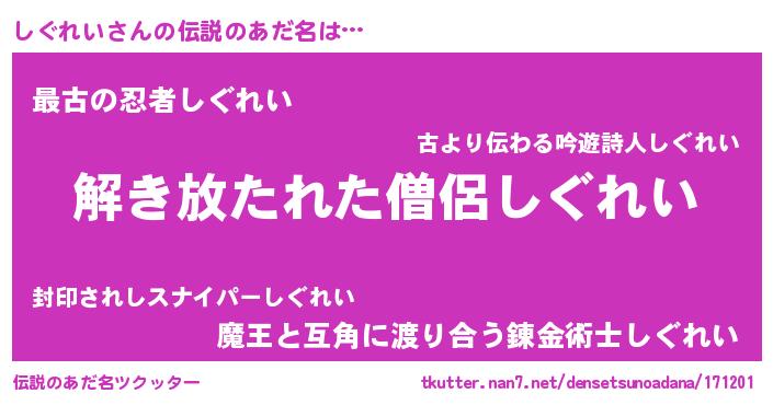 | 意味不明あだ名 | 『とにかく怪しいしぐれい』 |