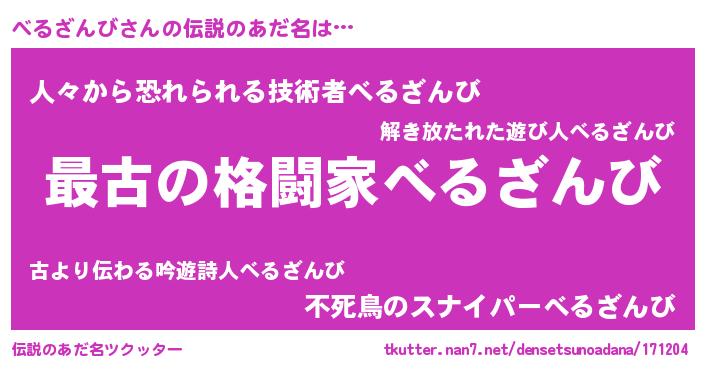 | ヒーロー風カッコイイあだ名 | 『ウルトラべるざんびマン』 |