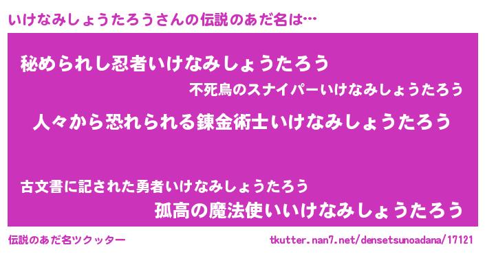 | 意味不明あだ名 | 『自称いけなみしょうたろう』 |