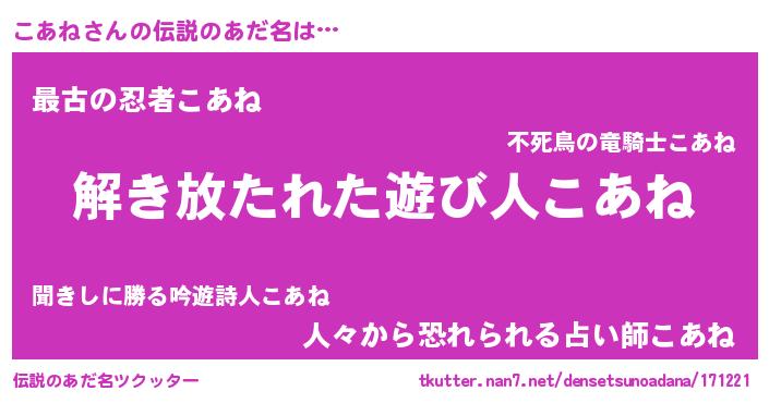 | 意味不明あだ名 | 『とにかく怪しいこあね』『自称こあね』 |