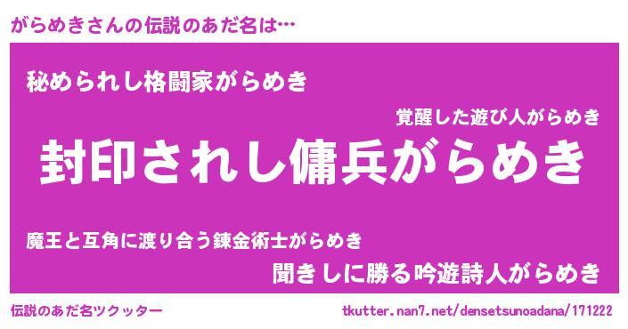 | 胡散臭い通販商品みたいなあだ名 | 『億万長者になれる水晶球…その名も「がらめき」』 |