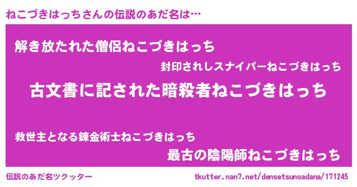 | 意味不明あだ名 | 『永久保存ねこづきはっち』 |