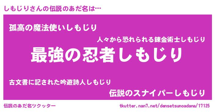 | ヒーロー風カッコイイあだ名 | 『最強戦士シモジリ』『黄金騎士シモ』 |