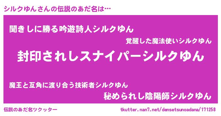 | 意味不明あだ名 | 『ペロリンシルクゆん』 |