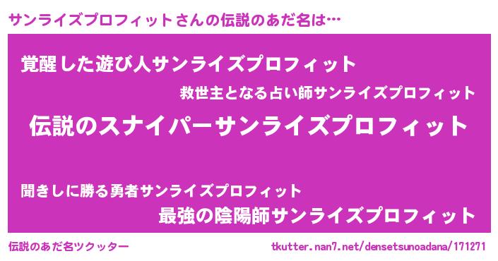 | 男性向けラノベタイトル風あだ名 | 『サンライズプロフィットスレイヤー』 |