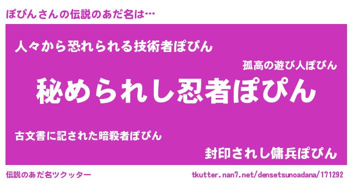 意味不明あだ名 | 『自称ぽぴん』『ぽぴんフォーエバー』 |