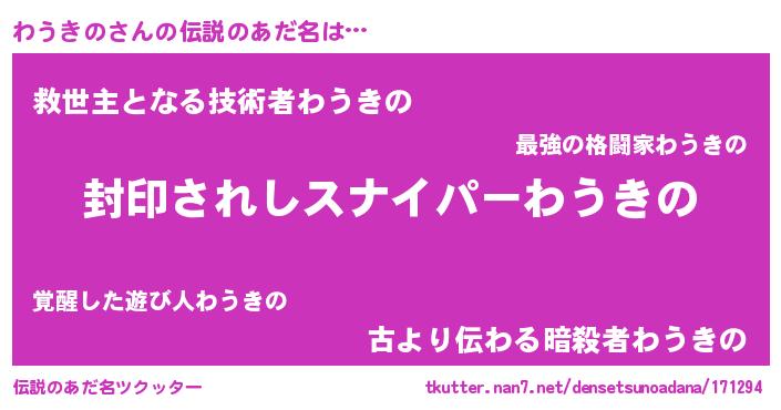 | 胡散臭い通販商品みたいなあだ名 | 『億万長者になれる霊験あらたかなお札…その名も「わうきの」』 |