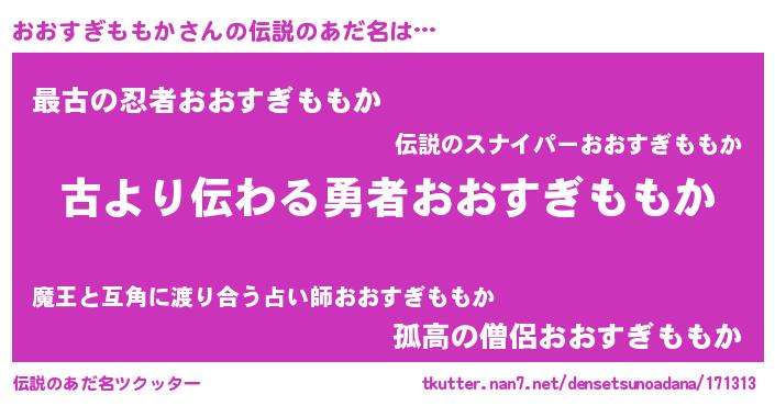 | 意味不明あだ名 | 『永久保存おおすぎももか』 |