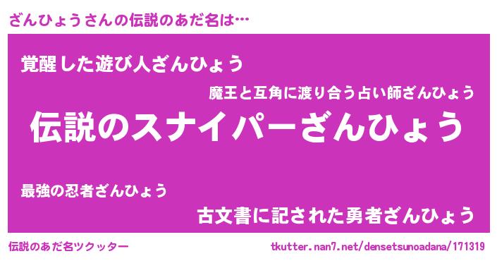 | 胡散臭い通販商品みたいなあだ名 | 『必ず成功する霊験あらたかなお札…その名も「ざんひょう」』 |