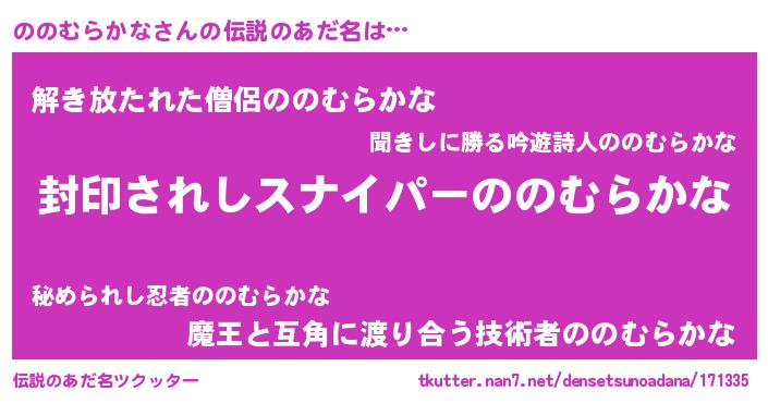| 胡散臭い通販商品みたいなあだ名 | 『億万長者になれる霊験あらたかなお札…その名も「ののむらかな」』 |