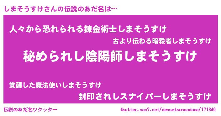 | 意味不明あだ名 | 『しまそうすけフォーエバー』 |