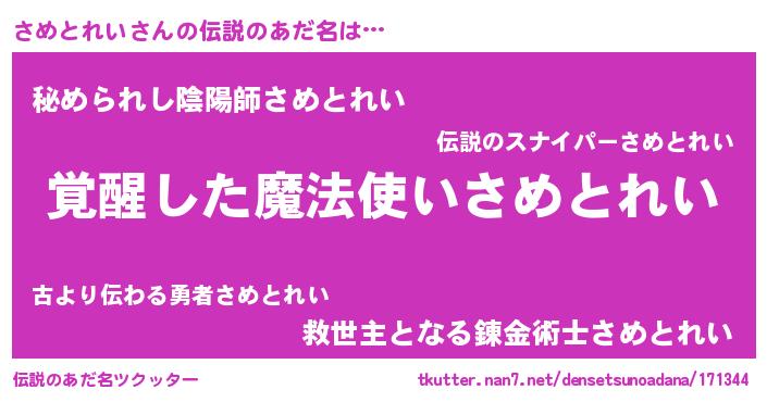 | 意味不明あだ名 | 『とにかく怪しいさめとれい』 |