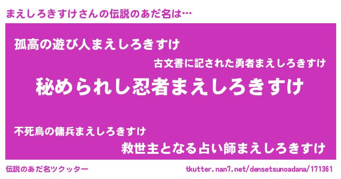 | 意味不明あだ名 | 『自称まえしろきすけ』 |