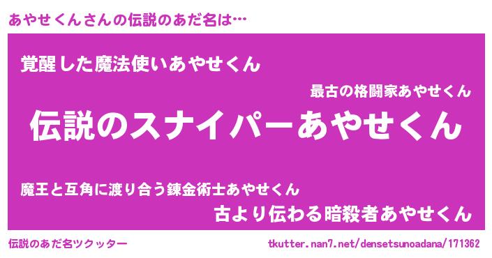 | 胡散臭い通販商品みたいなあだ名 | 『必ず成功する霊験あらたかなお札…その名も「あやせくん」』 |