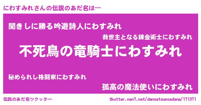 | ヘコむあだ名 | 『にわにー』『にわすみれ(笑)』 |