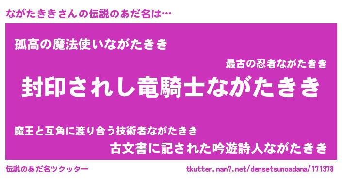 | 意味不明あだ名 | 『ペロリンながたきき』『自称ながたきき』 |