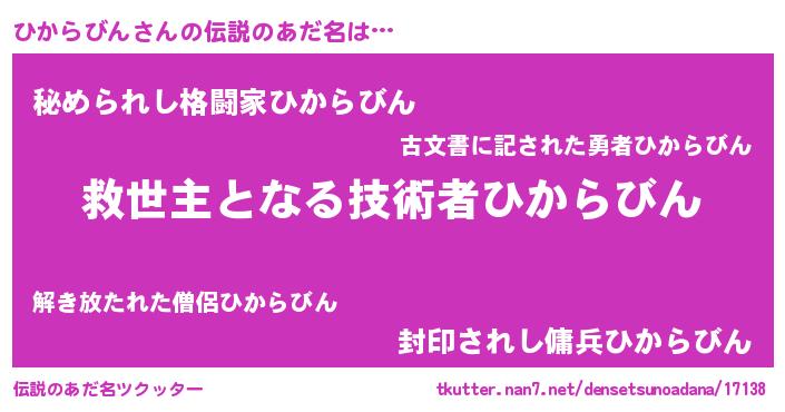 | 意味不明あだ名 | 『自称ひからびん』 |