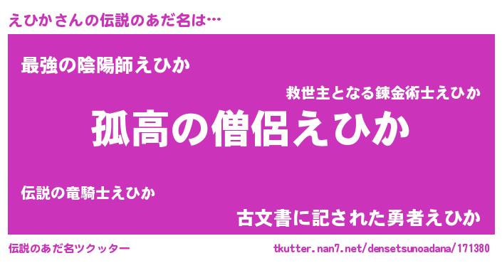 | 意味不明あだ名 | 『とにかく怪しいえひか』 |