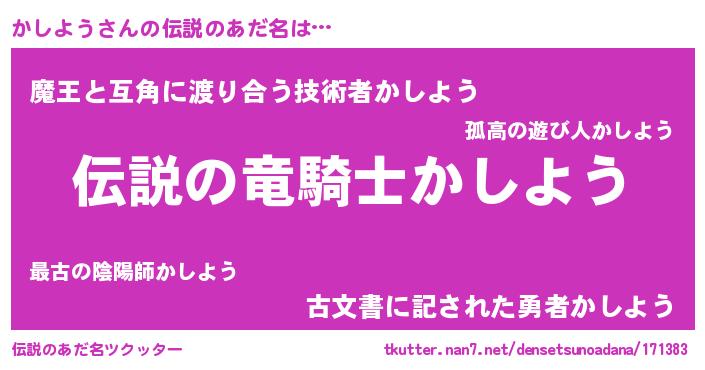 | ヒーロー風カッコイイあだ名 | 『スーパーカシヨウ』『ネオカシヨウ』 |