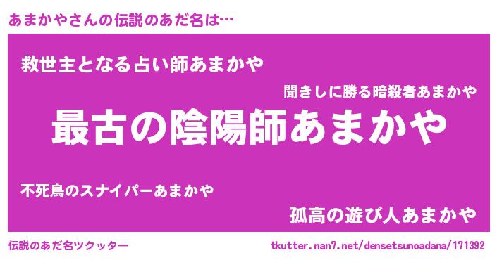 | 意味不明あだ名 | 『あまかやフォーエバー』 |