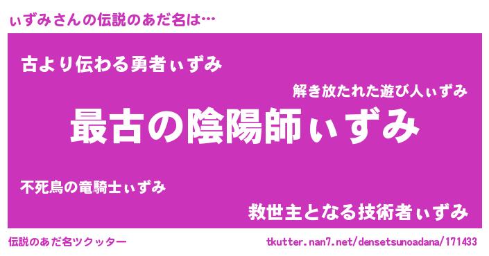 | ヒーロー風カッコイイあだ名 | 『ウルトラぃずみマン』『仮面ィズダー』 |