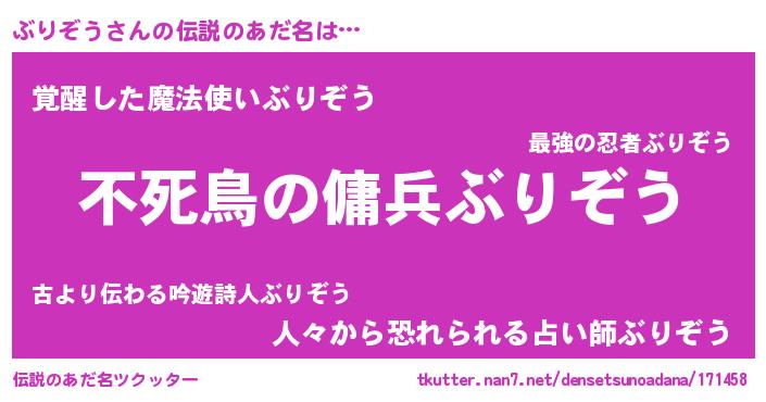 | 女子向けラノベタイトル風あだ名 | 『ぶりぞう姫と円卓の騎士』 |