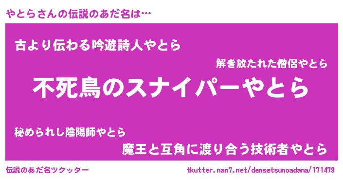 | 胡散臭い通販商品みたいなあだ名 | 『モテモテ間違いなし霊験あらたかなお札…その名も「やとら」』 |