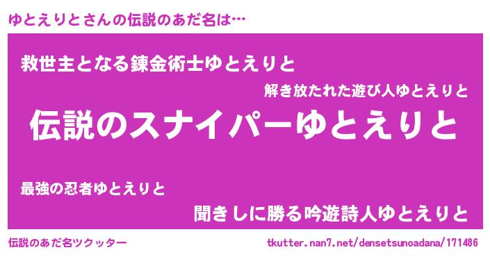 | 意味不明あだ名 | 『ペロリンゆとえりと』『自称ゆとえりと』 |