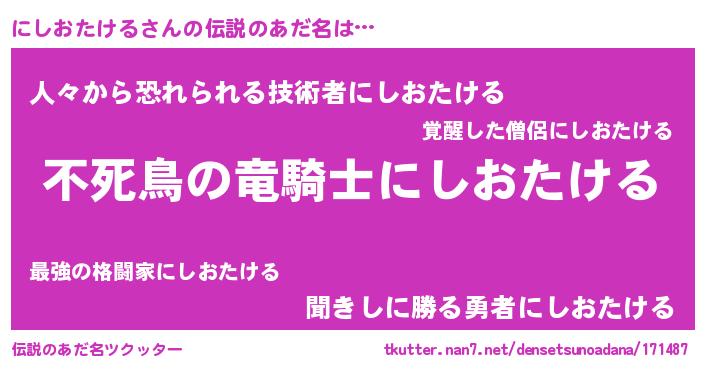 | ヘコむあだ名 | 『にしにー』『にしおたける(小並感)』 |